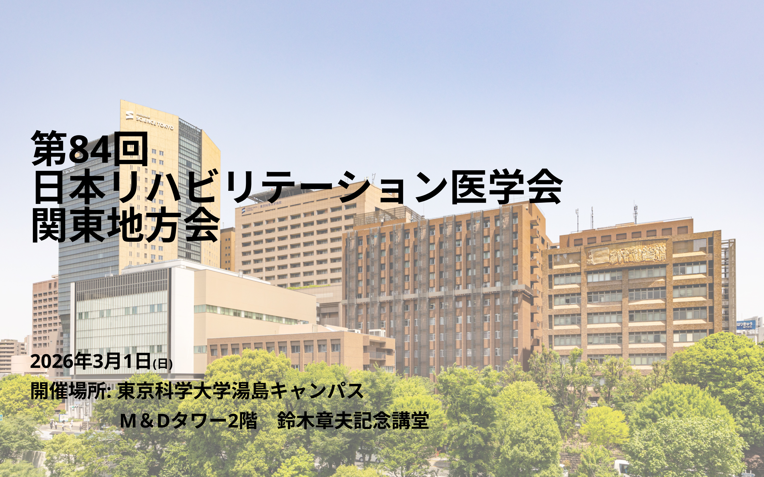 このたび、第84回日本リハビリテーション医学会関東地方会ならびに専門医・認定臨床医生涯教育研修会を、2026年3月1日(日)に東京科学大学 鈴木章夫記念講堂にて開催させていただく運びとなりました。開催にあたり、一言ご挨拶申し上げます。